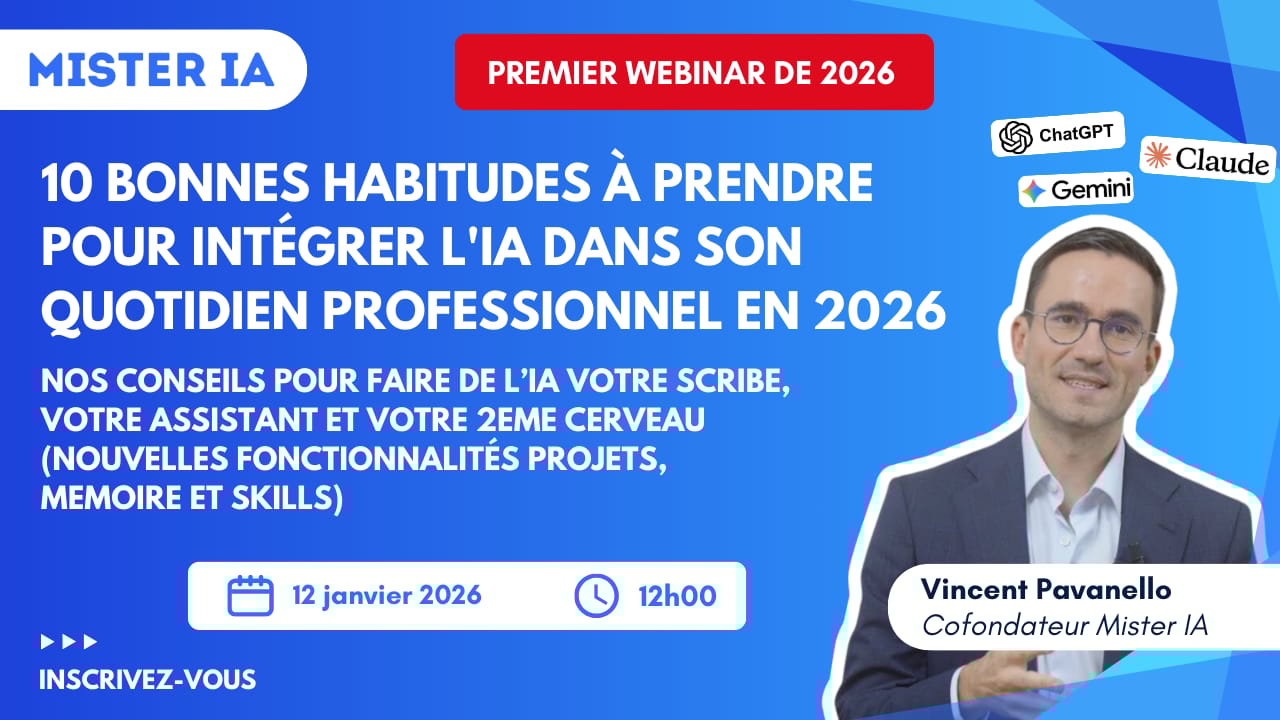 Votre bonne résolution 2026, c'est de vraiment intégrer l'IA dans votre quotidien professionnel ? Venez à ce webinar où on va vous montrer les 10 cases à cocher pour y arriver.
